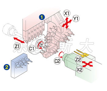 | 四、斯大走心機(jī)SR-20JIItypeA橫向鉆孔5軸單元下方2軸,采用模塊化設(shè)計(jì),可根據(jù)工件需要自由安裝可交換式工具,實(shí)現(xiàn)工藝的靈活性,通過(guò)功能模塊的組合,輕松實(shí)現(xiàn)各種變化,以此獲得機(jī)床的最佳結(jié)構(gòu)。 | |||